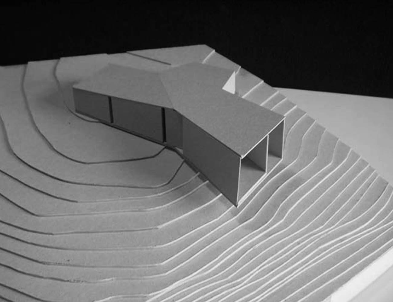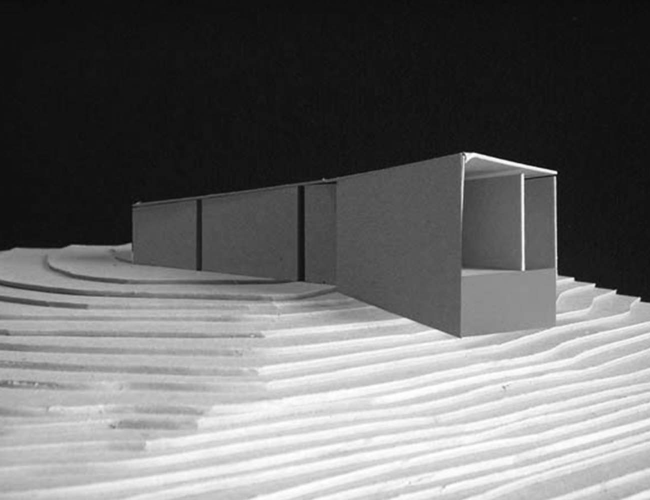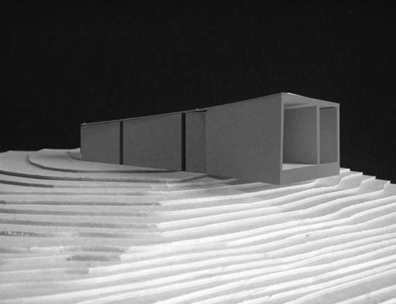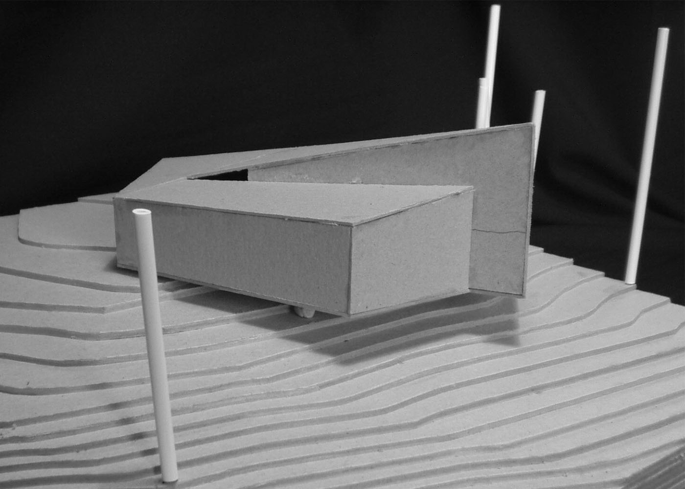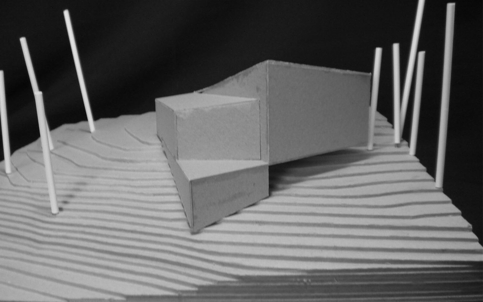 The singular quality of this timber line eschews any notion of domesticity or romantic “rural” habitation. Rather, it acts as a monumental object which navigates its landscape setting and provides both a “place” to inhabit within that landscape and a backdrop to it.