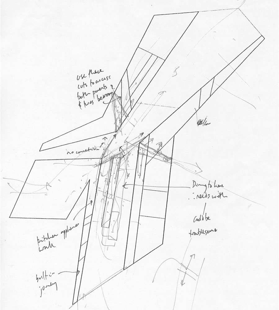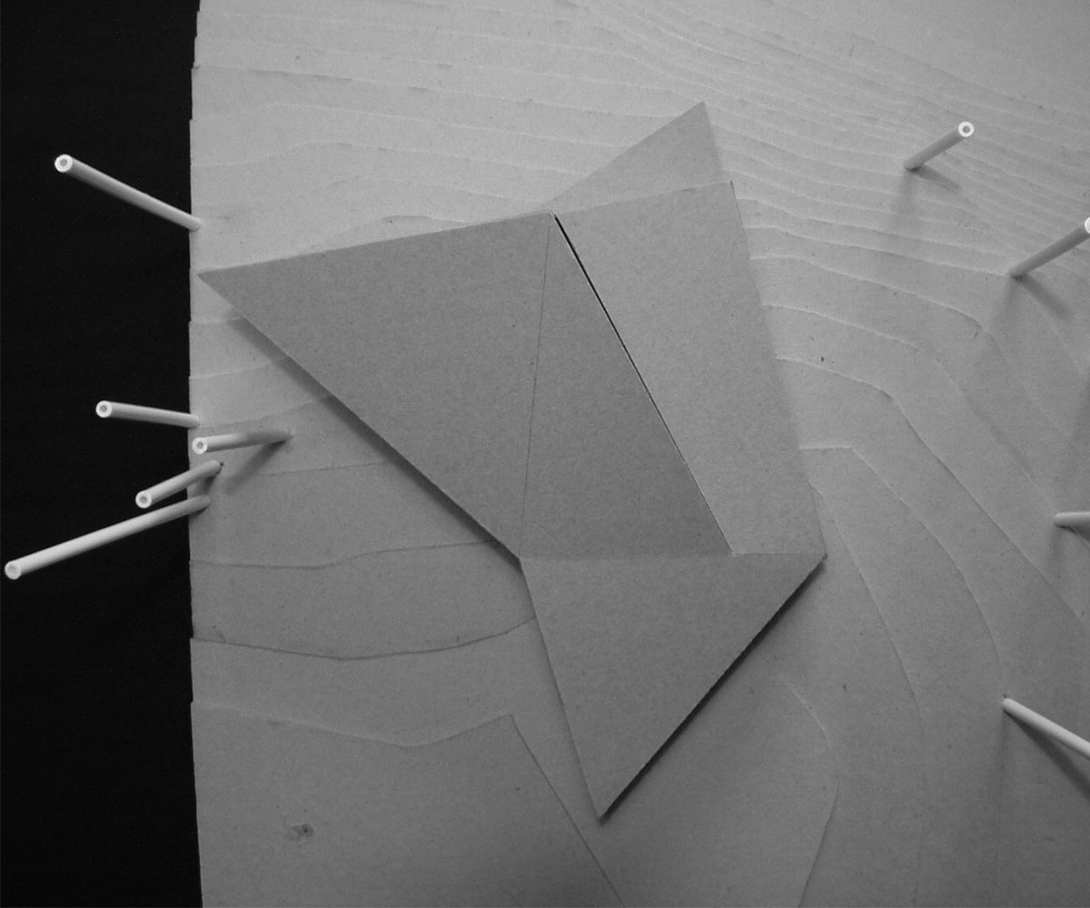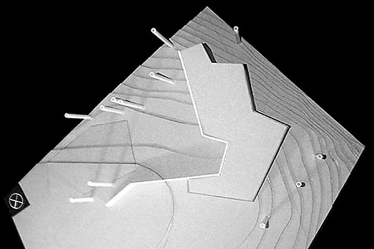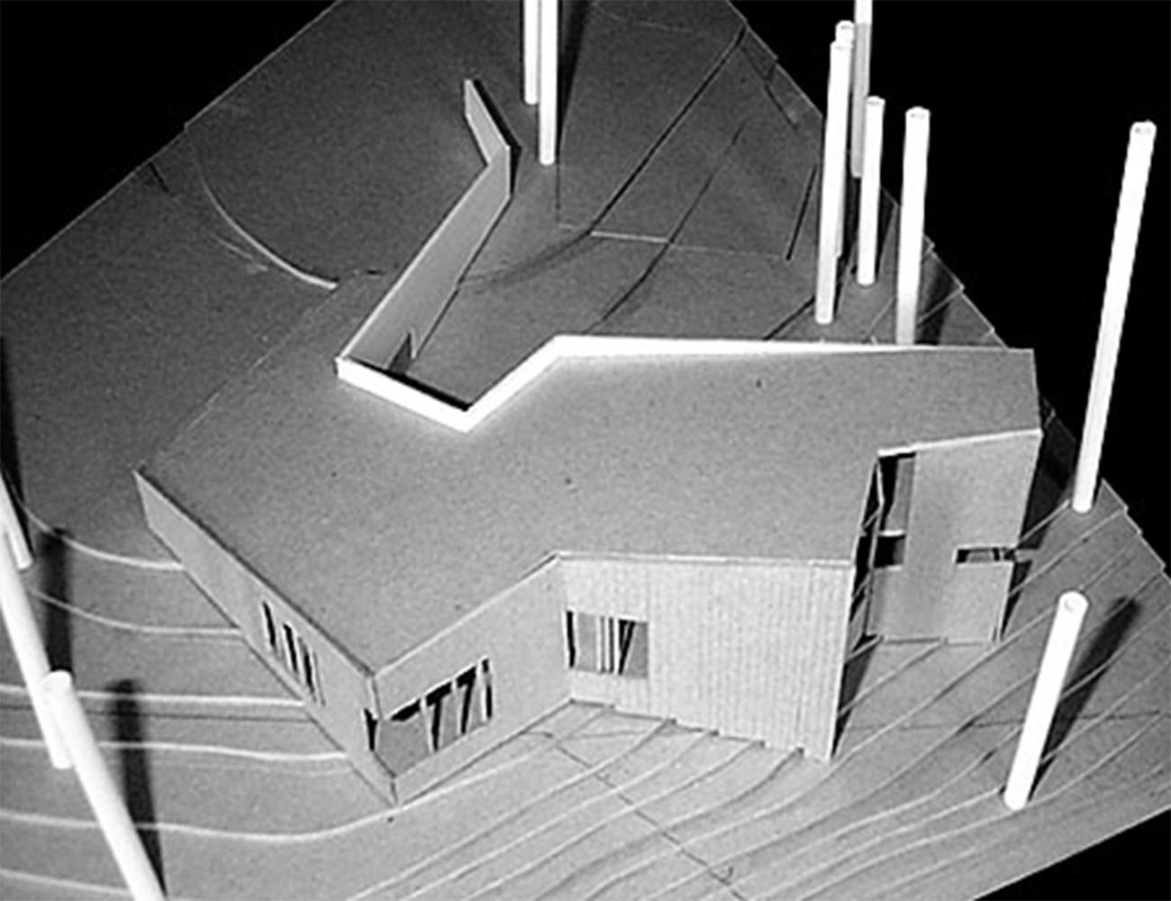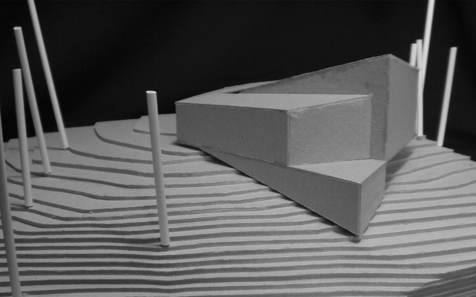 The singular quality of this timber line eschews any notion of domesticity or romantic “rural” habitation. Rather, it acts as a monumental object which navigates its landscape setting and provides both a “place” to inhabit within that landscape and a backdrop to it.