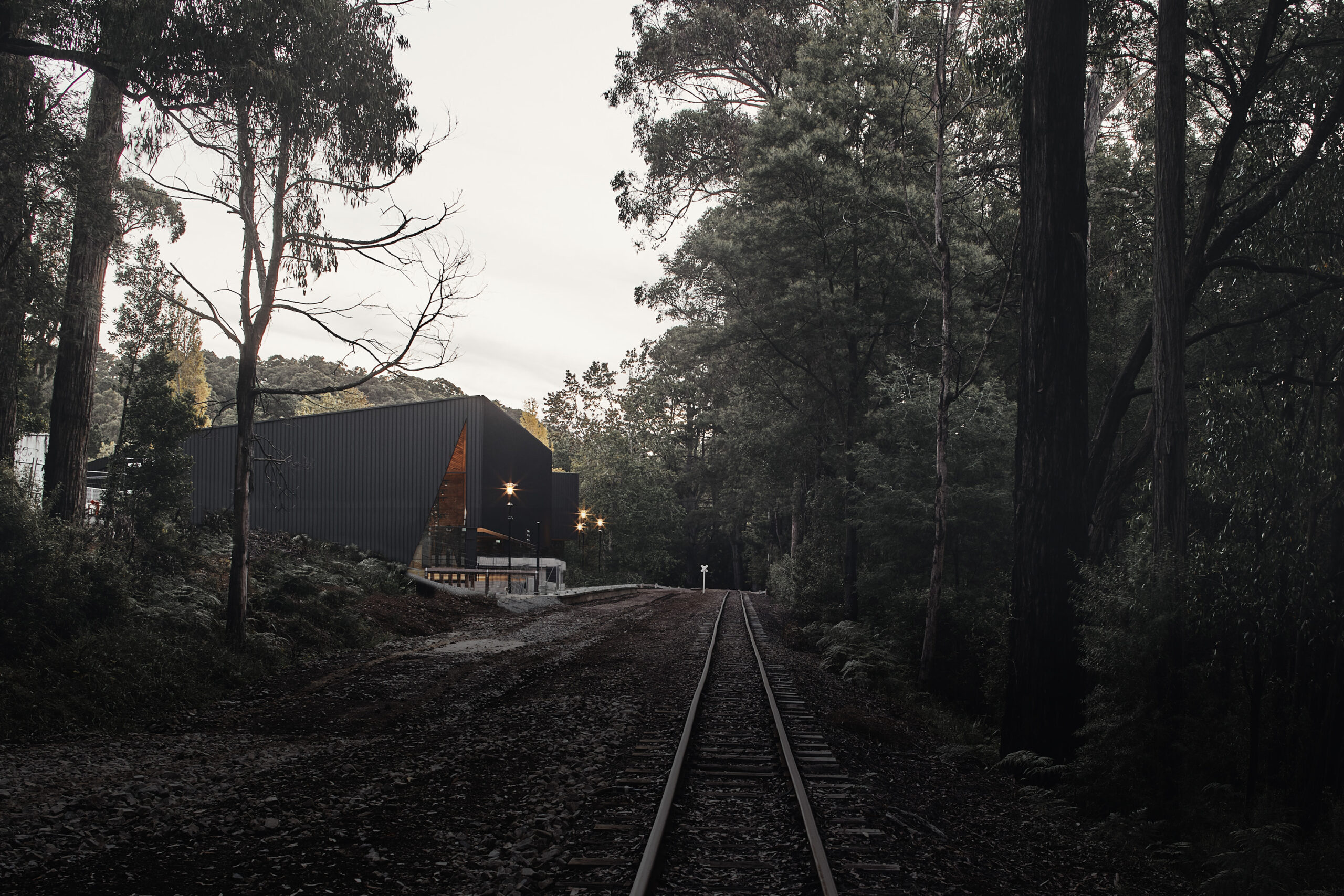 Meandering journey The platform is manipulated to preserve significant trees that are critical of the identity of the bush setting, whilst providing enhanced spaces track side and views over Puffing Billy Railway trains, people and activity, and beyond to Emerald Lake. Embodying the meandering rail route through the landscape, the visitors journey is nuanced around the bush landscape.