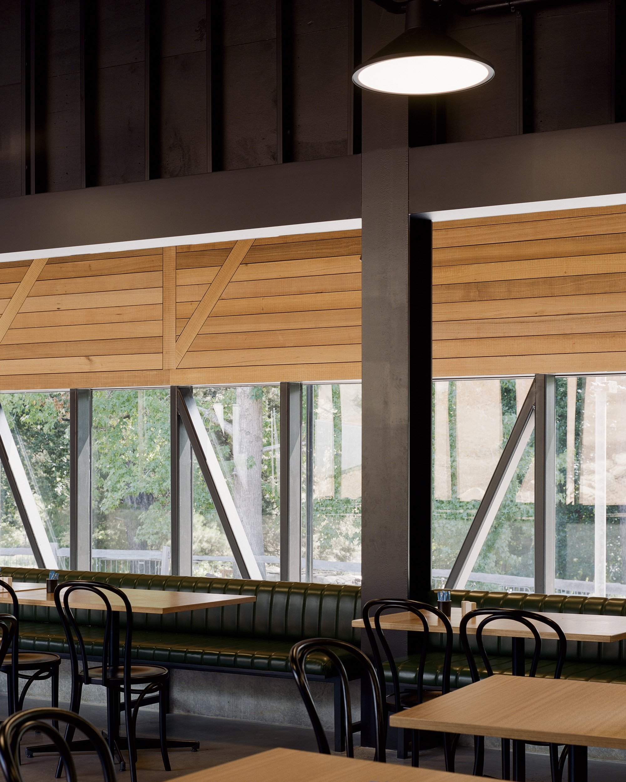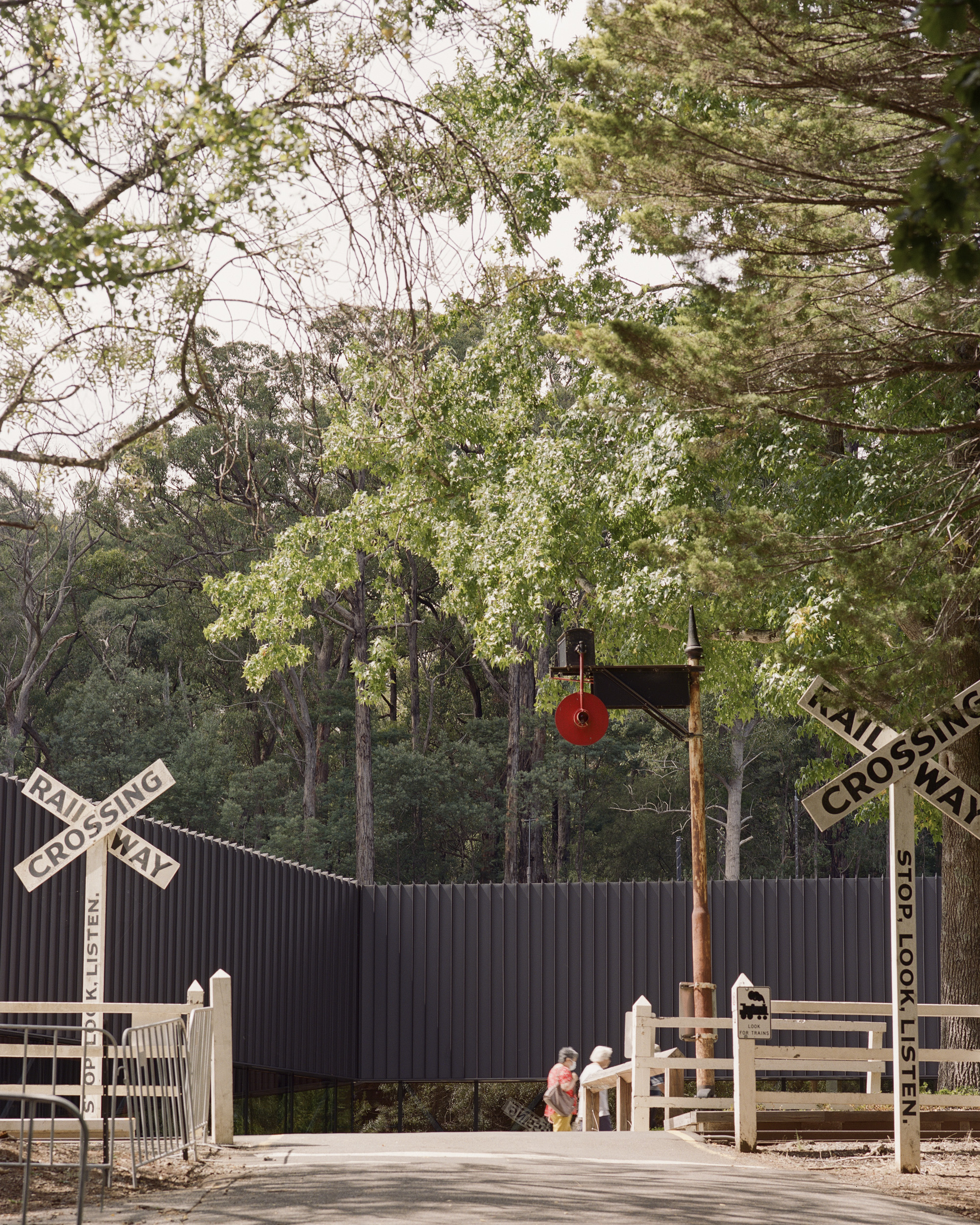 Our strategy was not to focus on building a “novel” visitor centre as a new attraction, but rather focus on the existing railway line and platform – creating a visitor experience anchored within the authentic sights, smells and sounds of the railway. We also responded specifically to the two unique landscape contexts, working with our landscape team at Tract Consulting to stitch together the bushland uphill of the project and the contrasting European park landscape in front.