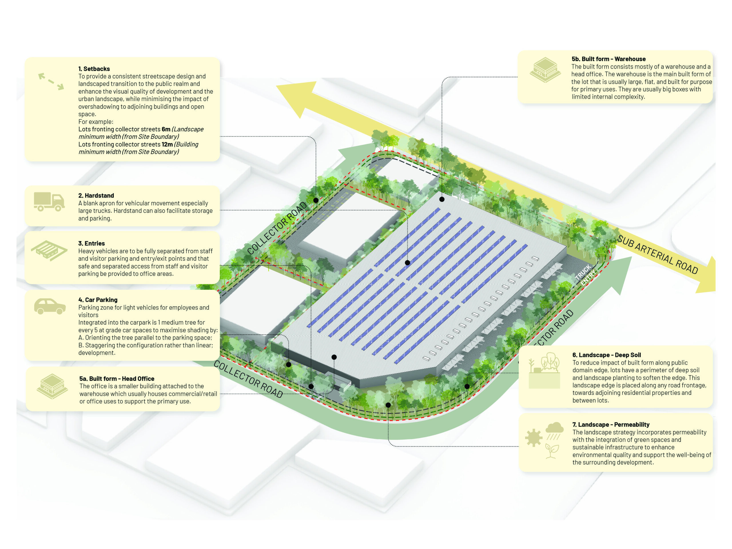 Market feedback on building scale, especially for agribusiness uses, indicate the demand for larger scale footprints compared to those indicated on the Agribusiness Precinct Plan. Ranging from small scale to hyper scale, footprints of 20,000 - 100,000sqm will need to be accommodated to meet with market demand, now and into the future.