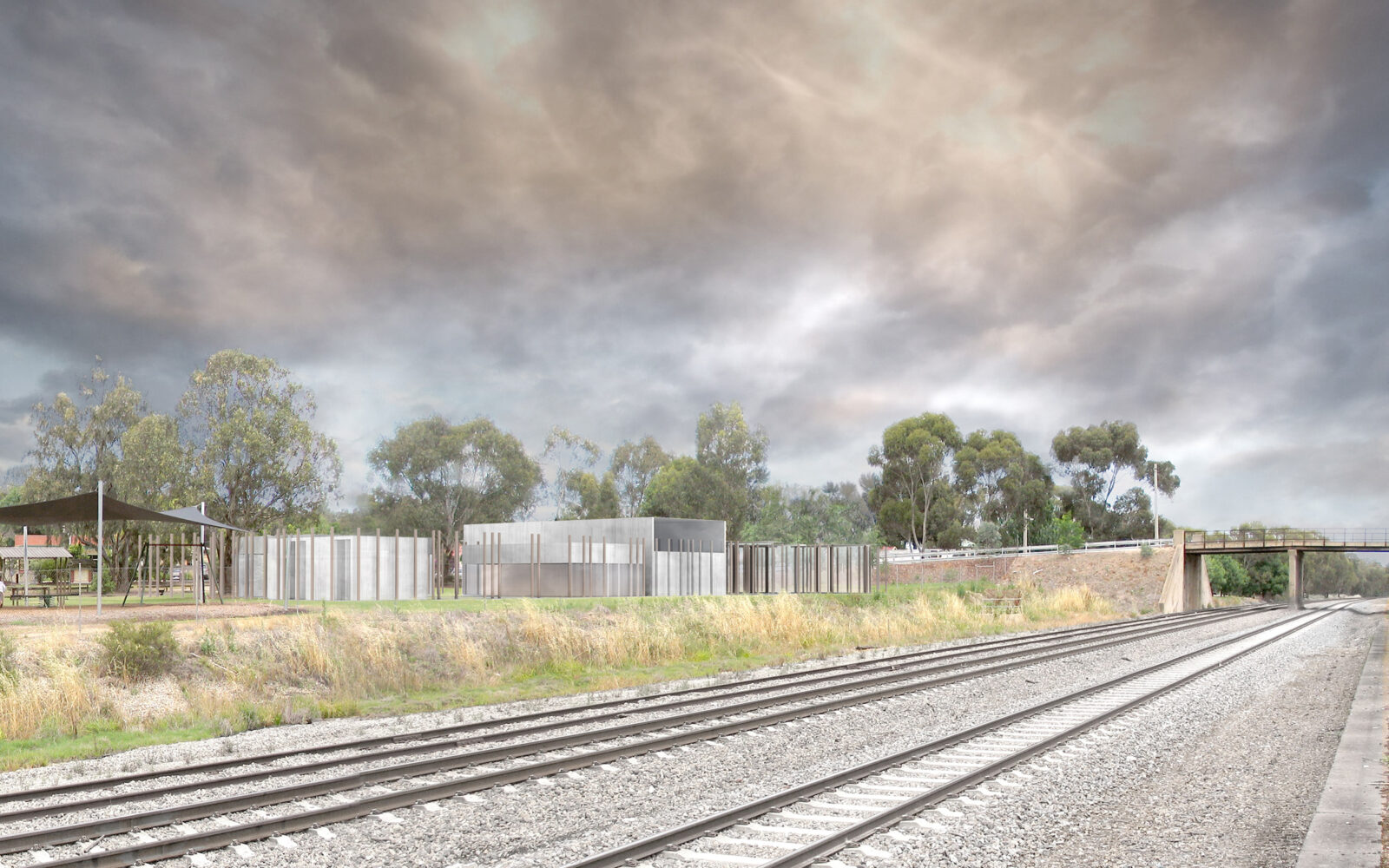 The proposal took advantage of the natural characteristics of a corner of an open park fronting the town’s main street, which afforded views to the significant sites: the capture site, siege site and railway platform. Drawing on accounts of observers gathering within the trees during the siege, and Ned Kelly’s strong association with the ‘bush’, the Ned Kelly Interpretive Centre provides public space and a sequence of galleries that intermingle with the trees and focus from there on the key sites.