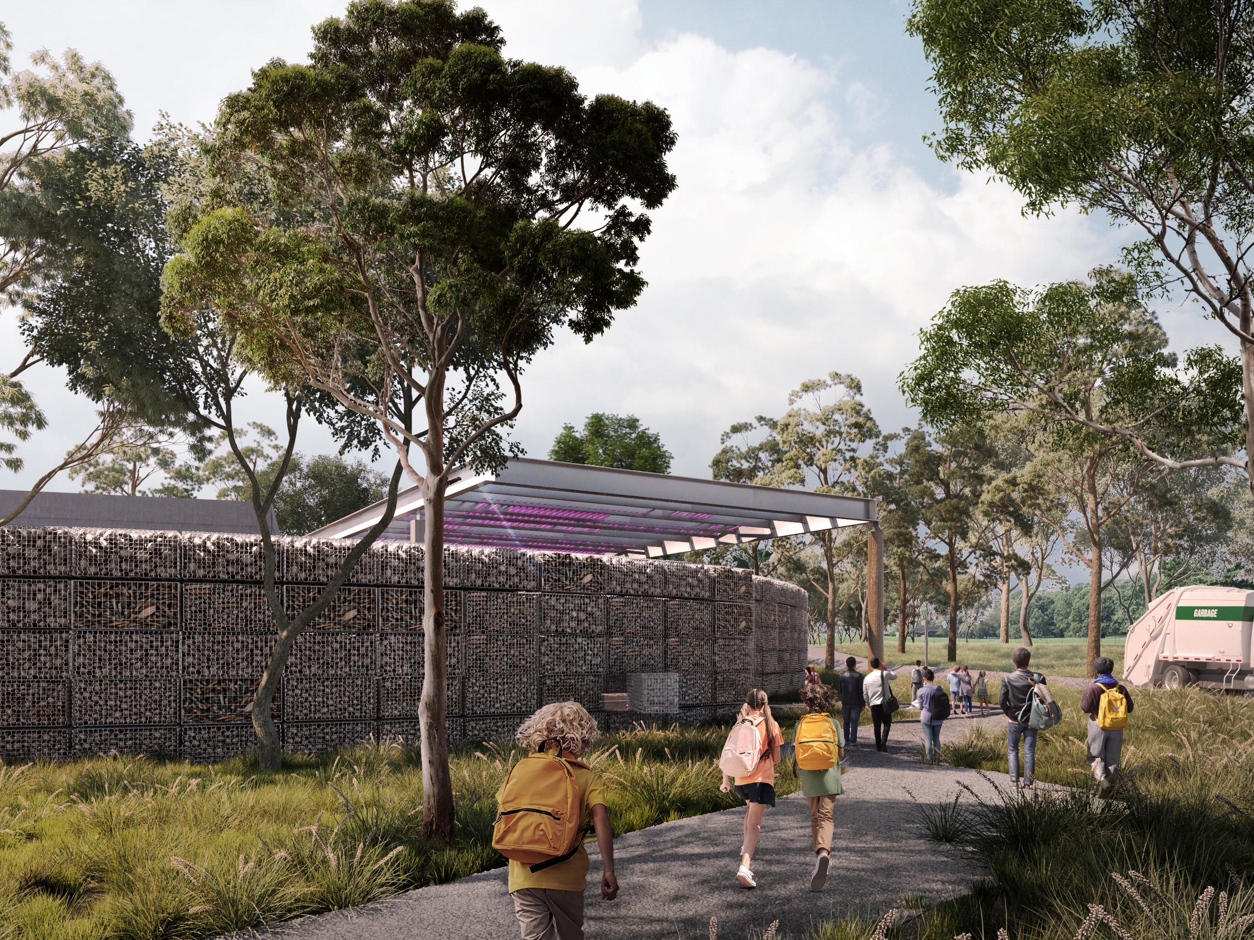Sited at a regional waste processing centre with a large focus on optimisation of its waste material, the building is to be used as an education and research centre where school groups can come to build knowledge about the potential of material re-use and, most importantly, to be excited by the possibilities.