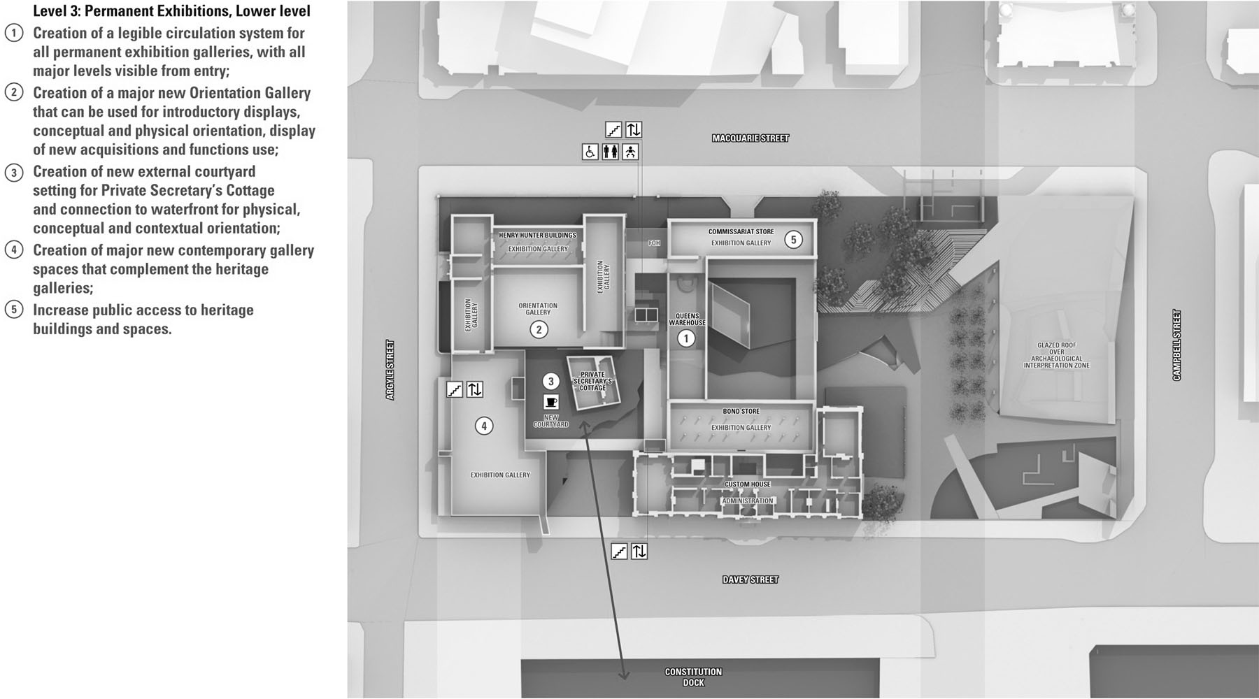 Our approach was to undertake a series of research tasks to assist in clarifying how to understand the project. Given the importance of so much of the collection, building stock and site, this was no easy task. Having landed on the concept of the project as an intersection of the exceptional natural landscape around the site; the exceptional suite of buildings on site; and the unique collection which combines both museum objects and artwork; a series of diagrams then unfolded how these intersections would work. Using this strategy as a constant, we then moved on to address key questions such as the location of new buildings, the nature of renovations and additions and how the collection would be curated in this context.