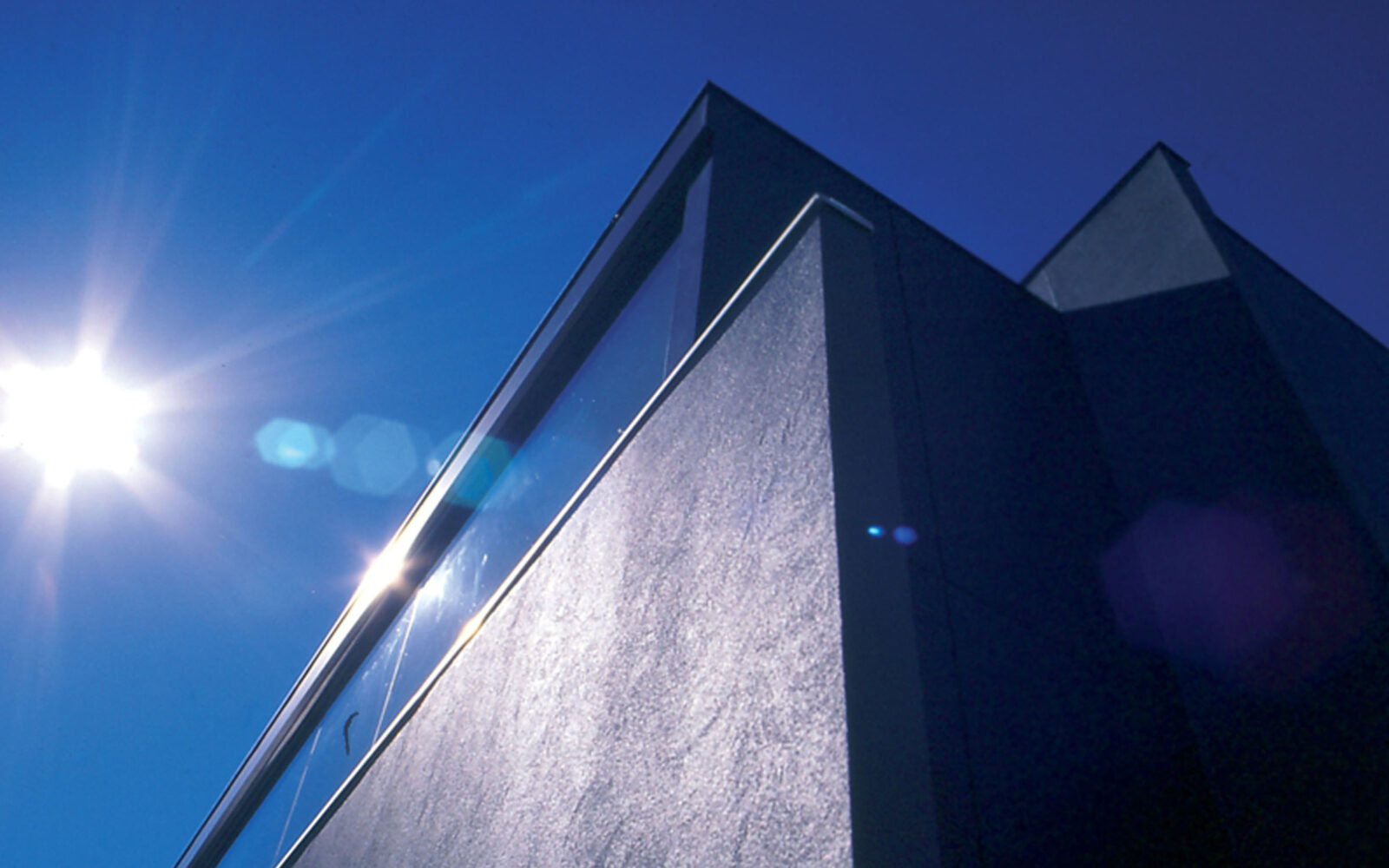 The formal strength of the block form provided a backdrop for a series of thin, lightweight planes that articulate the major public spaces with views to the river and ‘western shore’ hills. These planes recalled the layering of the city landscape on the western side of the river and are embellished in thin galvanized stripes on the façade, suggesting the extension of the building beyond its suburban plot. From a distance, the building disappears completely with the exception of these stripes, left as a floating plane that amplifies the directional qualities of the river valley.