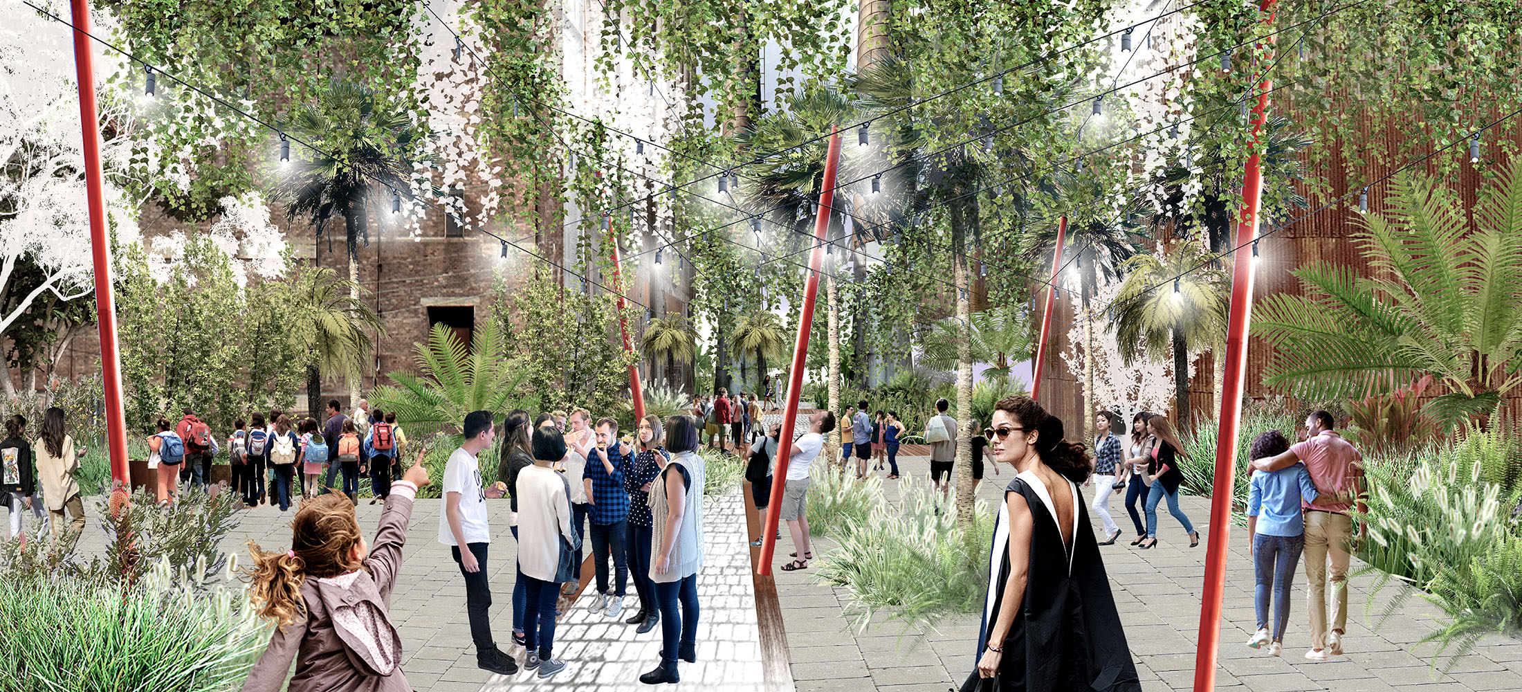 The masterplan was guided by the drivers for success of an Innovation District and to create a place which would attract and foster the brightest creatives in the tech industry. But there was a desire amongst our design team, which also included Urban & Public (landscape architecture) and Design 5 (heritage architecture) for more. We wanted to create a place that also protected and addressed the interests of the broader population and which showcased the layers of human innovation through time that were evident across the site. A number of components were considered within the creation of the masterplan and particularly the need for the masterplan to engage in the temporal factors which considered the logical but flexible expansion of the site and into integration into existing adjacent neighbourhoods, along with the other areas of the Bays Precinct to be developed subsequent to this site.